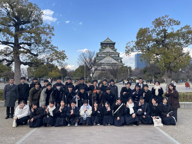 大阪到着後は、大阪城天守閣を見学しました。壮大な天守閣を前に、クラス写真を撮影し、日本の歴史や文化に触れる貴重な時間となりました。