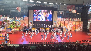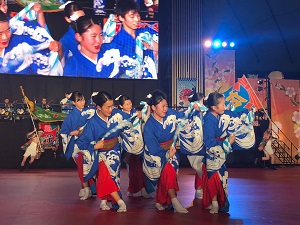 1月13日(日)・14(月・祝)の2日間、天草市役所牛深ハイヤチーム、東京牛深ハイヤの会、そしてくまモンと、大人数で牛深ハイヤを披露しました。全国各地の祭りを紹介する大きなイベントで楽しく、最後は、会場内のお客さんと一緒に道中踊りを楽しみました。天草市役所牛深ハイヤチーム、東京牛深ハイヤの会のみなさま、ありがとうございました。