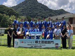 7月31日(金)、第43回全国高等学校総合文化祭〈2019さが総文〉が佐賀県武雄市・武雄文化会館で行われ、「牛深ハイヤ節」を披露しました。惜しくも賞の受賞とはなりませんでしたが、部員14名で元気いっぱい「牛深ハイヤ節」を披露しました。