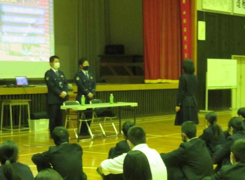 本日7限目に「交通事故防止について」と題して、交通安全講話が行われました。講師として牛深警察署より合原様と山川様をお招きし、自転車や原付バイクの安全な乗り方など交通ルールに関する大切なことをお話しいただきました。