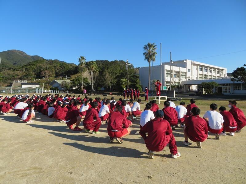 天候に恵まれた本日、校内マラソン大会が行われ、参加した生徒は砂月海水浴場方面折り返しコース(男子12㎞、女子10㎞)を元気よく走り抜けました。完走後はぜんざいやあおさ汁をおいしくいただきました。表彰式では男女それぞれの上位5名が表彰を受けました。