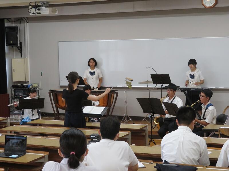 また、熊本県吹奏楽コンクール推戴式が行われ、出場生徒を激励しました。式では演奏も行われ、しばし全校生徒職員で聞き入りました。練習の成果を発揮できるよう頑張ってきてもらいたいと思います。