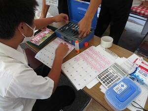 7月31日(日)の牛深みなとフェスティバル「海族祭」で販売実習を実施し、今年度は3年次の情報ビジネス系列の生徒15名が担当しました。初めての店舗運営でしたが、商品陳列や金銭授受など試行錯誤しながら販売・接客を頑張りました。また、事前に商品知識を身に付けたおかげで、しっかりとPRして販売することができました。夕方には無事に完売することができ、達成感と喜びをみんなで分かち合いました。