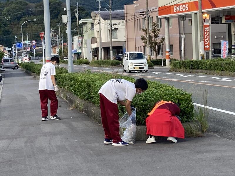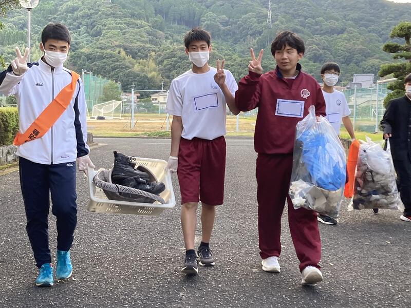 1年~3年次19名の生徒が参加し、学校周辺の清掃活動を行いました。道沿いのたばこの吸い殻、海岸に捨てられた釣り客のゴミの多さに驚いた清掃活動となりました。牛深の海をきれいに保つことの大切さを改めて実感することができました。一人一人の心がけでポイ捨てはなくなるため、環境保全の大切さを継続して伝えていきたいと思います。