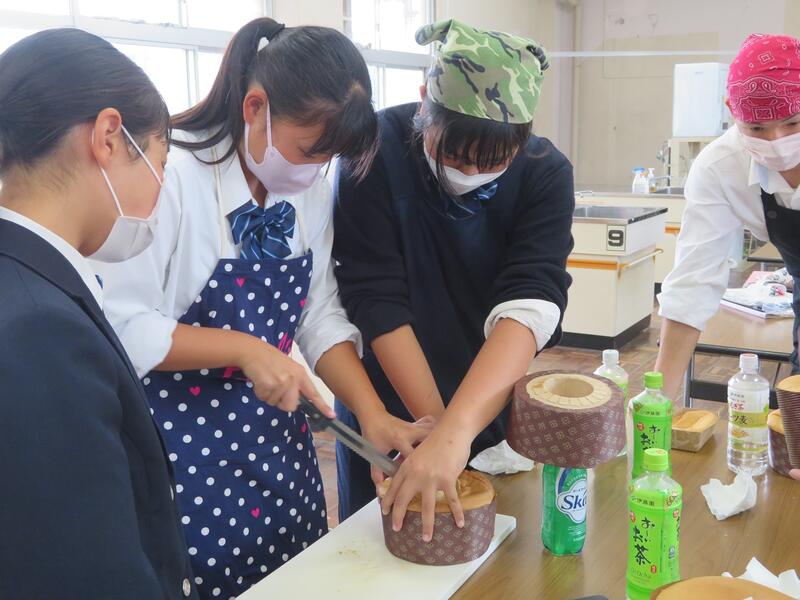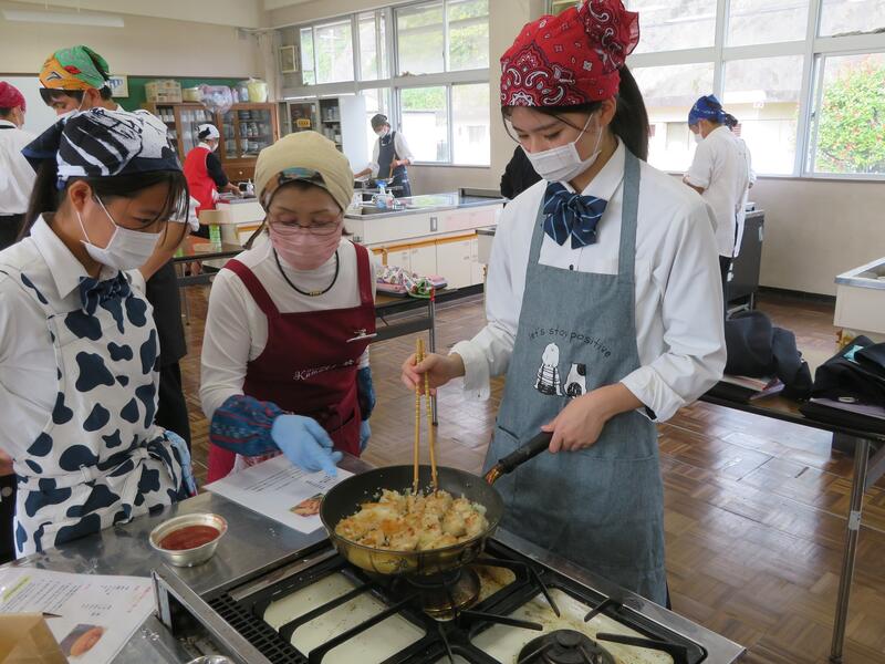2年次フードデザインの授業で、くまもと米粉インストラクターの岩下様を講師としてお招きし、米粉講習会が行われました。講習では、米粉を使ったシフォンケーキと鶏のチリソースに挑戦し、各グループおいしく作ることができました。今日作ったレシピを自分のものにして、今後も米粉を使った料理に挑戦していってもらいたいと思います!