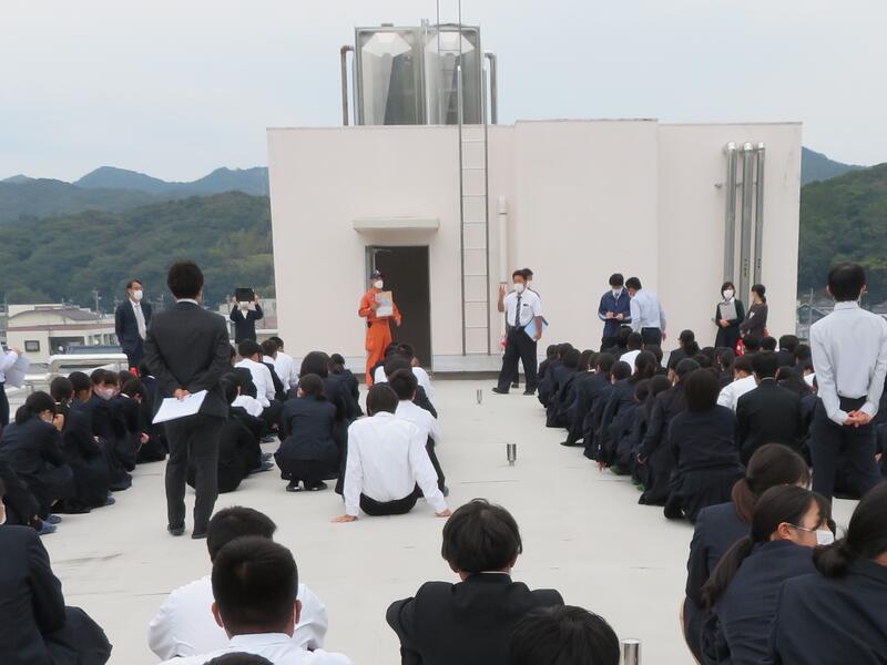 地震・津波避難訓練を実施しました。今回の訓練では、地震と津波を想定して実際に本校の屋上へ避難しました。避難後は、天草広域連合南消防署の中様より避難する時の注意事項などを御助言いただきました。また、家庭の火災報知器の有効な設置方法についてもお話をしていただきました。いざという時に、冷静に行動できるように今日学んだことを家庭でも振り返り、災害からの避難について考えるきっかけとしてほしいと思います。