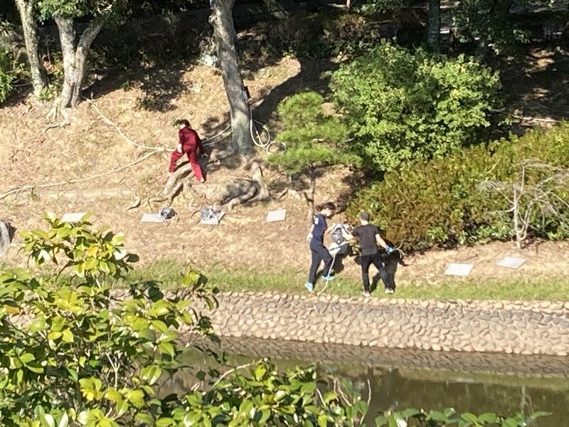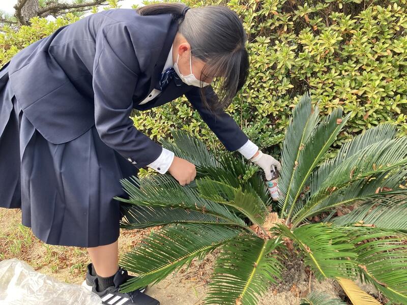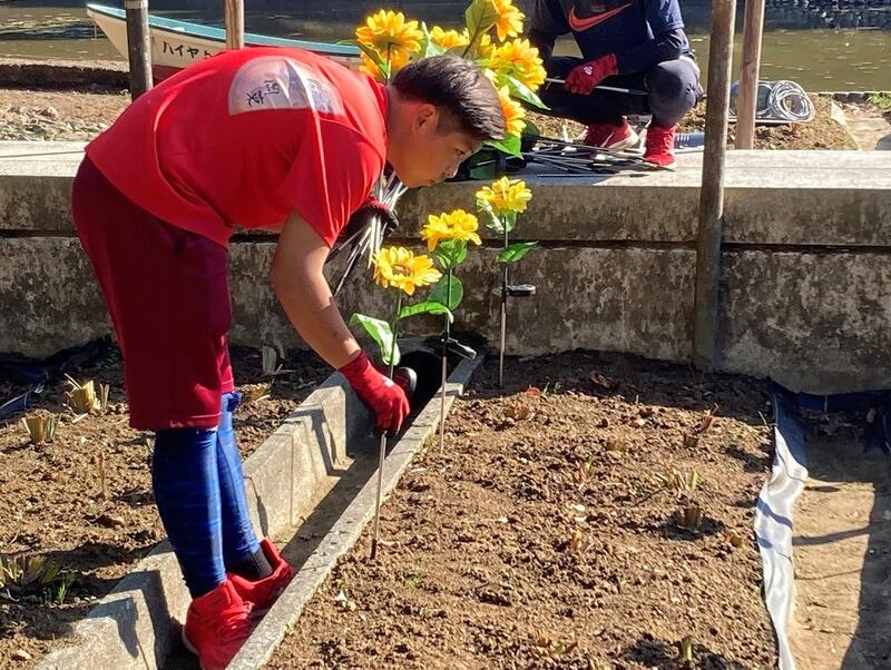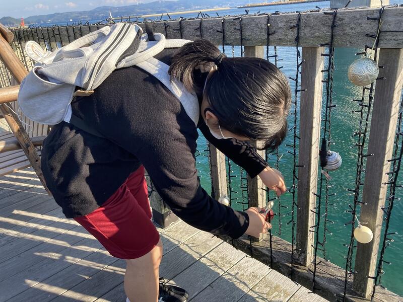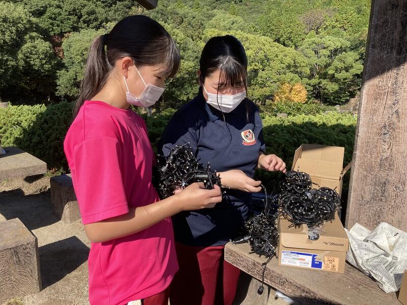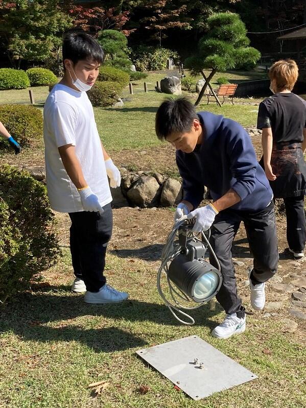 1年~3年次約40名の生徒が参加し、日本庭園、海彩館のウッドデッキ、ハイヤ大橋ライトアップの準備を行いました。