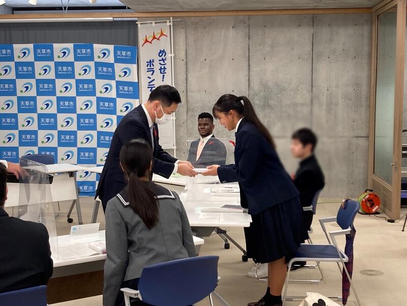 天草市役所にて「中高生と馬場市長とのボランティアトーク」が行われました。本校からは、2年次の尾谷さんが参加しました。