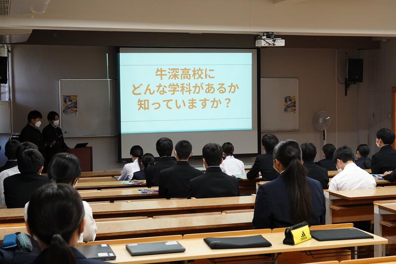 牛深中学校と牛深東中学校の2年生を招待し、秋のオープンスクールを開催しました。本校生が案内役や先生役となり、学校紹介や特別授業が行われ、お互いに緊張しながらも楽しいひとときを過ごすことができたようです。中学生の皆さんに楽しんでもらうために当日までの準備を進めてきた生徒たちは、終了後は「ホッ」とした表情をのぞかせていました。ご参加いただいた中学生の皆さん、ご来校いただきありがとうございました!