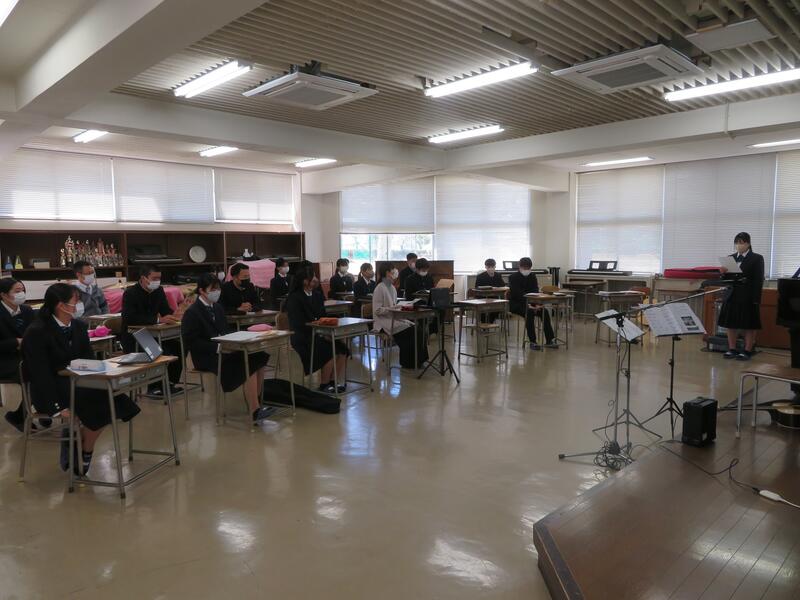 2年次器楽選択者による年度末演奏会が行われました。大勢の観客を前に緊張感に包まれながらも、それぞれが選んだ曲をギターの弾き語りやピアノによる演奏を行い、これまでの練習の成果を精一杯披露することができました。次年度もさらに上達するよう頑張ってほしいと思います。演奏者の皆さん、おつかれさまでした!