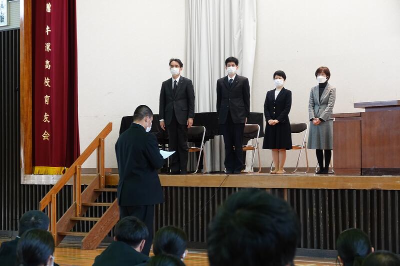 転退任式が行われました。式では転退任される先生方から、牛高での思い出や在校生と卒業生へ激励のメッセージが伝えられました。先生方とお別れするのはとても寂しいですが、先生方のこれからのご健康とご活躍を願っています。これまで本当にありがとうございました。