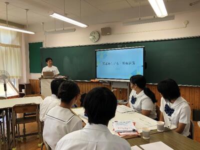 8月22日(木)牛深高校を会場に行われた『天草市こども・若者会議』に牛高生5名がこども委員として参加しました。アイスブレイクの絵しりとりから始まり、「天草市をどんなまちにしたい?」、「天草市の好きなところ・好きでないところは?」といった問いかけに応じて、一人ひとりが自分の考えを出し合いました。最終的には「天草市をもっとにぎやかで、こどもからご高齢の方まで皆が楽しく過ごせるまちにしたい」という意見にまとまりました。今回の会議で考えたことを、今後の総合的な探究の時間の活動にも生かしていきたいと思います。天草市健康福祉部子育て支援課及び有限責任監査法人トーマツの皆様、貴重な機会を提供していただき、ありがとうございました。