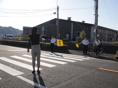 秋の交通安全週間中の3日間、正門前で育友会の役員の方に登校指導とあいさつ運動をしていただきました。