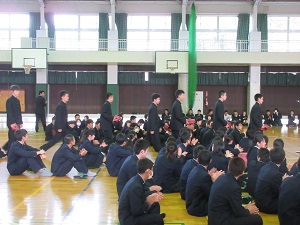 体育館に移動し、保健部講話、集団行動を行いました。