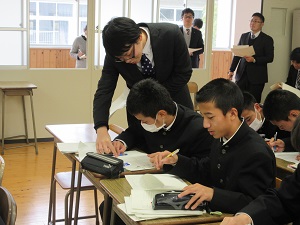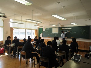 1月27日(金)、6限目に熊本県立天草高等学校 数学科 スーパーティーチャーの松田伸也先生をゲストティーチャーに迎え、2年次 選択 『数学活用』の公開授業が行われました。
