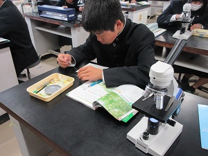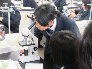 顕微鏡でオオカナダモの観察が行われました。