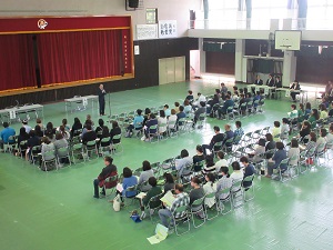 1時限目の授業参観でしたが、早朝より来校いただきありがとうございました。育友会総会では、昨年度の事業報告や決算報告、今年度の予算説明、役員の紹介などが行われました。