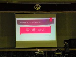 交通事故は、なくすことができます。これから冬休みとなります。交通事故にあわないよう、落ち着いて行動しましょう。