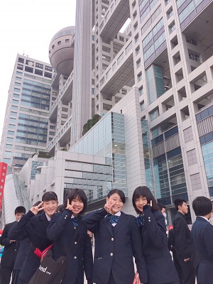 今日は、一番楽しみにしていた班別自主研修でした。まず渋谷を目指し、スマホを駆使してなんとかスクランブル交差点に辿り着くことができました。原宿に行くときは山手線を使いましたが、とても人が多くてびっくりしました。新宿は、高層ビルが建ち並びスーツ姿の人が多く、都会の雰囲気を実感しました。スカイツリー展望台からは、天気が悪く景色が見えづらかったのですが、思い出に残ったのでよかったです。今日1日、いろいろなところを友達と一緒に回ることができ、楽しくて思い出に残る1日となりました。