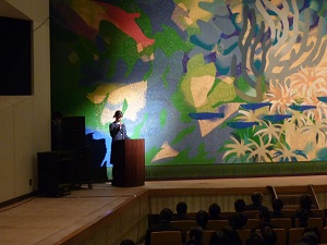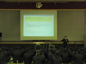 終業式では、中島校長が一休の歌『門松は冥土の旅の一里塚 めでたくもありめでたくもなし』を紹介されました。「新しい年を迎えるということは、1つ年を重ねたこと、そしてこの1年間を無事に過ごせたことの証。新しい年を迎える前に、感謝の気持ちを持ち、1年を振り返って次に進む準備をしておくことが大切。」とあいさつを述べました。