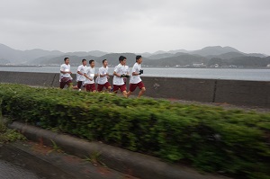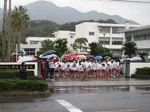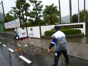 予定を30分繰り上げ、女子は9時30分、男子は9時45分に学校をスタートし、後浜、魚貫を駆け抜け学校に戻る15kmのコースを走りました。生徒は、ビニール袋を着用し大会に参加し、途中で雨が強くなりましたが、沿道からの声援に笑顔で応えながら、ゴールしました。
