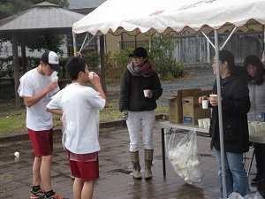 ゴール後には、育友会役員の方による豚汁がふるまわれました。みんなでおいしくいただき、冷えた体も温まりました。