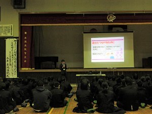 12月13日(木)、DV未然防止教育講演会を実施しました。『相手とよりよい対等な関係を築くために~交際相手からの暴力「デートDV」について~』と題し、子ども家庭福祉課・赤池様にご講演いただきました。