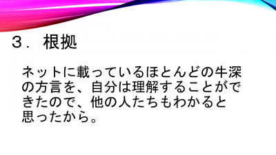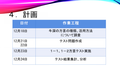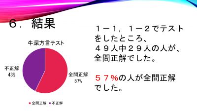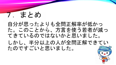2年次は、地域資源を活用したイベント「ロゲイニング」についての報告を行いました。企画・運営を通して学んだチームワークや、地域の魅力を再発見するプロセスについて、生き生きとプレゼンテーションしました。