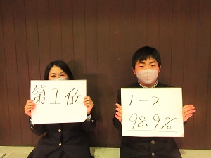 はじめに保健委員会からの連絡がありました。保健委員会では、4日間に渡り朝自習と終礼時の各クラスのマスク着用率を調査しました。新型コロナウイルス感染者数は増加傾向にあり、自分だけでなく相手のためにもマスクを着用しましょう。マスク着用、換気、手洗い・うがいを行い、感染予防に努めていきましょう。