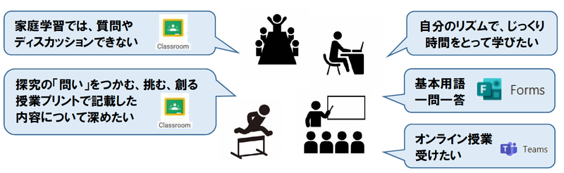 生徒からは「欠席した場合でも助かる」「わからない点はいつでもふりかえられる」「予習・復習のリズムがつかめる」「課題の提出が簡単」「提出期限が把握できて便利」などの声が挙がるなど,とても好評です。