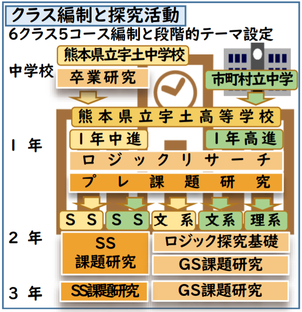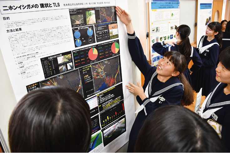 SSH校に指定された高校には毎年、特別な予算が国から割り当てられています。国立研究開発法人科学技術振興機構(JST)からの支援を受けられるため、高度な研究を行う実験機器や大学・専門機関等との連携、学会発表や国内研修、海外研修の支援を受けることがが可能となります。また、熊本県教育委員会や熊本県立教育センターからの指導助言を受け、先進的な教育活動を進めることが可能となっています。