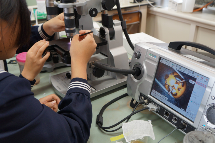 本校は文系理系問わず「研究(一人一人の、なぜ?何?を調べる)」に触れる授業があります。授業で生じた疑問を「研究」したり、科学部でさらに研究を深めたりすることができます。県内の大学だけでなく国内・海外の大学との連携も可能で、実際、つくばの大学や研究施設と独自の連携も行っており、世界最先端の研究を間近で見ることもできます。部活動と両立しながら、全国のSSH指定校が集まる全国大会や世界大会(ISEF)で発表した先輩もいます。当然、これらの経験ができる高校は少なく、大学受験の際の願書や面接でのアピールポイントにもなっています。
