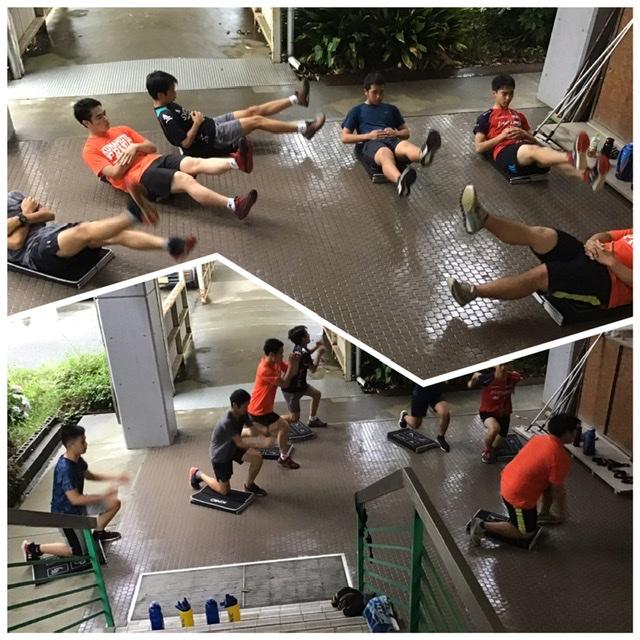みんな,一生懸命ダミー人形の代わりのテニスボールを押しています。