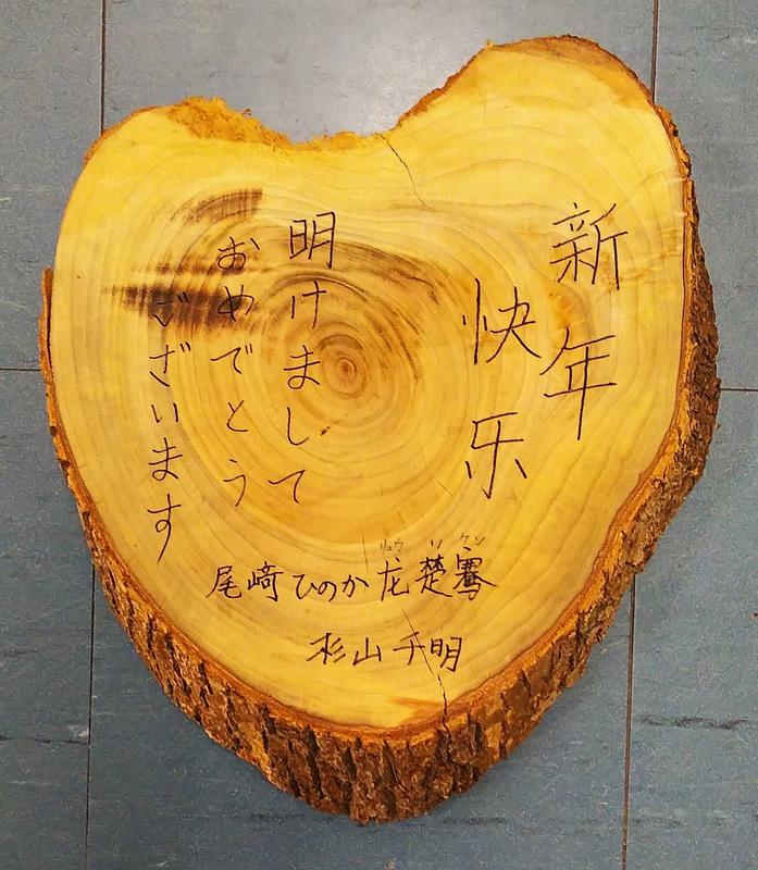 熊本市動植物園の方が1月23日(木)おいでになり、巨大門松制作時に飾り付けていた本校生徒のネームボード(上の写真の左端のボードです)を戻してくださいました。