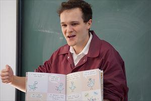 今月は読書月間ということで、中学生に絵本の読み聞かせを行っています。1年生には鬼塚先生が「ぼくにもそのあいをください」(宮西達也)、2年生には岩永先生が「サンタクロースっているんでしょうか?」(中村妙子訳)と山形先生が「手から手へ」(池井昌樹)、3年生には平野先生が「6わのカラス」(レオ・レオーニ・谷川俊太郎訳)を読みました。また、ALTのライアン先生とユアン先生が全クラスに、「The Snowman」(Michelle Knudsen)、「The Snowman and the Snowdog」(Raymond Briggs)、「The Duckling gets a cookie」(Mo Willems)、「If you give a mouse a cookie」(Laura Toffe Numeroff)などを読んでくださいました。