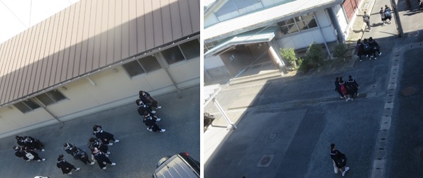 写真は,考査を終えて帰路につく生徒達の様子です。