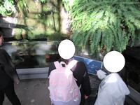 わかあゆカフェの後は、校内を歩いて授業や主な施設を案内しました。途中『わかあゆクイズ』にもチャレンジしました。「鏡わかあゆの校章にかくれている動物は何でしょう?」のクイズでは「鳥だと思う。」「魚じゃないかな。」と校章をじっくり見て考えていました。