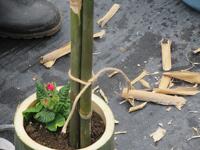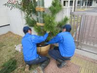 12月18日(水)に本校正門と鏡町区コミュニティーセンターに門松を作り設置しました。竹を切る際には、みんなで切り口の角度を相談したり、切った竹と合わせたりしながら慎重に切っていました。竹が回転しないよう竹を押さえる人と切る人とに分かれ、疲れたら交替しながら合計12本切りました。設置の際には、地域の方にも見守っていただきました。竹の向きや全体的なバランスを友達同士で確認し合いながら松や梅、南天、葉牡丹で飾り付けをしました。途中で少し離れた場所から見て微調整を行いながら、徐々に豪華になっていく門松を見て生徒達は喜んでいました。