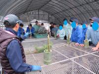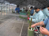 12月4日(木)に鏡町に在住の黒木直志様を講師にお招きして、農業科2・3年生14人がしめ縄作りを行いました。2年生は初めてのしめ縄作りでしたが、講師の方に手伝ってもらったり、先輩と協力したりしながら楽しく取り組むことができました。3年生は2回目の製作でした。準備の段階から藁を叩く強さや結び方などを徐々に思い出してきたようで、手際よく製作することができました。形を整えたり、飾りを付けたりしていくとどんどん豪華になっていき、実際に自分の家の玄関に飾ることを想像しながら作り上げていくことができました。学校用のしめ縄作りでは、3m程のしめ縄を作りました。みんなでボサボサとはみ出している藁を切ったり、バランスを整えたりしました。今年もしめ縄作りを通して日本の風習や意味などを知ることができました。自分たちで製作したしめ縄を玄関に飾り、よいお正月にしてもらいたいと思います。