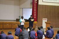 卒業式を約1カ月後に控えた2月9日(金)、洋服の青山様から講師を迎えて、身だしなみ講習会を開催しました。約2時間にわたり、おしゃれと身だしなみの違い、スーツの着こなし方、場面に応じたネクタイやシャツの選び方などを丁寧に教えていただきました。後半の時間は、ネクタイの結び方を教えていただき、実際に自分で結んでみました。今回初めてネクタイを結ぶ生徒も多く、鏡を見たり、講師の方を見たりして、手の動かし方を1つ1つ確かめながら結んでいました。