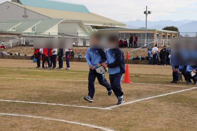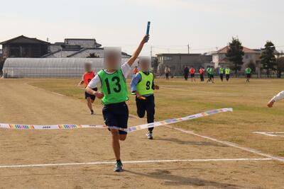 最後に「代表リレー」では、各学年から9人の走者がチームを組み、優勝を目指して競い合いました。わずかな差でしたが、序盤から1年生チームが少しずつリードを広げました。3年生チームと2年生チームも先輩の意地で途中、トップに立ちましたが、その差をじりじりと詰められるかたちで1年生が1着でのゴールを果たしました。
