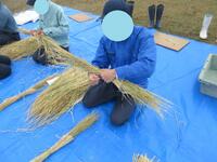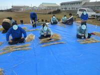 12月4日(木)に鏡町に在住の黒木直志様を講師にお招きして、農業科2・3年生14人がしめ縄作りを行いました。2年生は初めてのしめ縄作りでしたが、講師の方に手伝ってもらったり、先輩と協力したりしながら楽しく取り組むことができました。3年生は2回目の製作でした。準備の段階から藁を叩く強さや結び方などを徐々に思い出してきたようで、手際よく製作することができました。形を整えたり、飾りを付けたりしていくとどんどん豪華になっていき、実際に自分の家の玄関に飾ることを想像しながら作り上げていくことができました。学校用のしめ縄作りでは、3m程のしめ縄を作りました。みんなでボサボサとはみ出している藁を切ったり、バランスを整えたりしました。今年もしめ縄作りを通して日本の風習や意味などを知ることができました。自分たちで製作したしめ縄を玄関に飾り、よいお正月にしてもらいたいと思います。