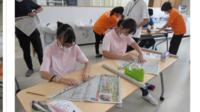10月11日と13日、2日間に分かれ、八代市立鏡小学校の2年生(64名)のみなさんが、生活科の学習「わたしたちの町はっけん」の一環で来校されました。鏡わかあゆ高等支援学校って、どんな学校なのかな? 校名の由来や学校の歴史、学習内容、施設などについて、クイズにしながら探検してもらいました。「え~、前は、氷川高校や鏡中学校があったんだ~」と校内の記念碑をタブレットで撮影する子どもたち、広い300mのグラウンドを駆け回る子どもたち、「わぁ~、お泊りするところ(寄宿舎)もあるんだ~。鏡小にはないよ」とビックリする子どもたち。学校の中に子どもたちの元気な声が響き渡り、とてもにぎやかな時間となりました。