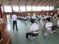 7月7日(水)、救命救急集会を行いました。この集会は、生徒が救命処置を学ぶものです。内容は、手順動画の視聴・生徒会役員による人工呼吸のデモンストレーション・人形を使用した心臓マッサージ(実技)を行いました。生徒は救命処置の動画を真剣に見ながら、ポイントを押さえた動きを真似したり、人形を使用して音に合わせながら、一生懸命腕に力を入れて心臓マッサージの練習を行いました。今回の集会では、生徒一人一人が真剣に動画を視聴し、心臓マッサージの練習を行ったことで、救命処置の大切さについて向き合う機会になりました。