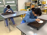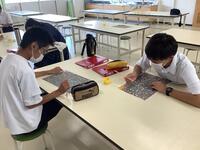 普通科2年生美術「モザイクアート」制作中