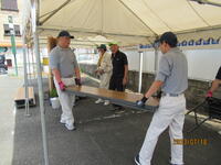 祭り当日の午前中、普通科3年生クリーン班が会場内の美化活動や展示品搬出等の十八夜祭準備を行いました。本校からは、鏡四つ角の学校作品展示会場に学校紹介パネルと各学科の製品を展示しました。