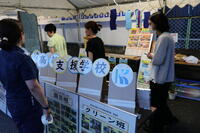 祭り当日の午前中、普通科3年生クリーン班が会場内の美化活動や展示品搬出等の十八夜祭準備を行いました。本校からは、鏡四つ角の学校作品展示会場に学校紹介パネルと各学科の製品を展示しました。