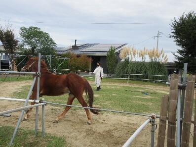 ※2調馬索・・・馬に乗らずに長い紐付け、鞭を使いながら走らせること。