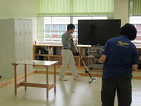 令和5年9月21日(木)に本校で2回目の熊本県特別支援学校技能検定(清掃)が実施されました。技能検定は、県教育委員会が主催する取組で、将来の就労につながる知識・技能・態度を育てるとともに、就労に向けた意欲の向上を目的としています。本校では7月に専門学科3年生が実施し、9月に専門学科2年生、10月に普通科クリーン班が受検する予定です。今回、専門学科2年生は、「テーブル拭き」と「自在ぼうき」に挑戦しました。