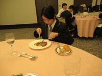 KKRホテル熊本では、マナー講習を受けながらおいしい昼食を頂きました。最初は緊張感もあり、料理を目の前にして戸惑う生徒も多くいましたが、料理を食べ進めるうちに笑顔も出始め、会話と食事を楽しむことができました。